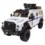 ماشین ضد شورش روسی کد CZ610AJ با طراحی الهام‌گرفته از خودروهای نظامی و امنیتی روسیه، رنگ‌بندی خاص سفید و مشکی، آینه‌های تاشو، سیم بکسل متحرک، چراغ‌های عقب و قابلیت موزیکال، یکی از بهترین گزینه‌ها برای خرید ماشین فلزی پلیسی و ضد شورش برند چژی محسوب می‌شود.