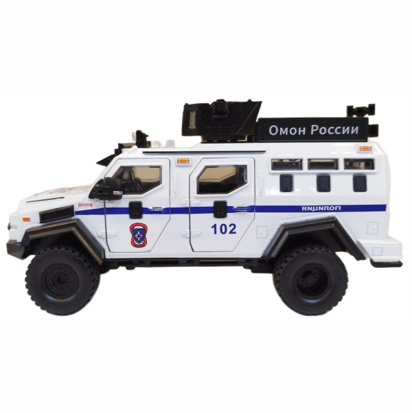 ماشین ضد شورش روسی کد CZ610AJ  یک ماشین فلزی خاص و جذاب با طراحی الهام‌گرفته از خودروهای نظامی روسی است. این مدل در دو رنگ سفید و مشکی عرضه می‌شود و به آینه‌های تاشو، سیم بکسل متحرک، قابلیت موزیکال و چراغ‌دار عقب مجهز شده است. سیستم عقب‌کش و سایز بزرگ با مقیاس 1:2، این ماشین را به گزینه‌ای عالی برای بازی کودکان، دکور و هدیه‌ای متفاوت برای علاقه‌مندان ماشین‌های پلیسی و نظامی تبدیل کرده است.