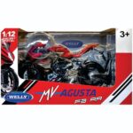 ماکت ام وی آگوستا برند ویلی با بدنه فلزی دایکست، رنگ‌بندی استاندارد و جزئیات کامل در بخش‌های موتور، اگزوز، فرمان و چرخ‌ها ساخته شده است. لوگوی MV Agusta روی بدنه با چاپ دقیق قرار گرفته و رنگ‌آمیزی آن با کیفیت بالا انجام شده تا شباهت زیادی به نمونه واقعی داشته باشد.